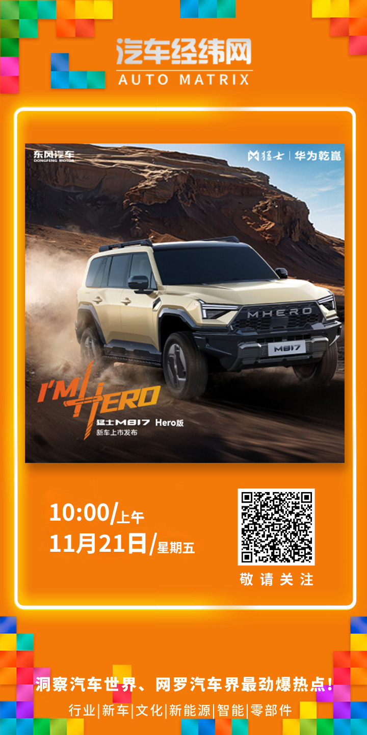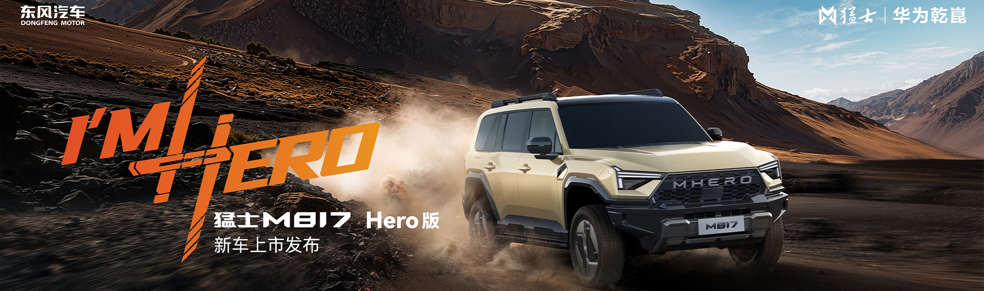 I’M HERO——猛士M817 Hero版新车上市发布会震撼启幕!Hero版是“高阶越野王者”,配备硬核三把锁、华为鲸鳍通信和卫星通讯,以极致长穿性能,应对各类越野挑战,越野更强悍,改装更自由!