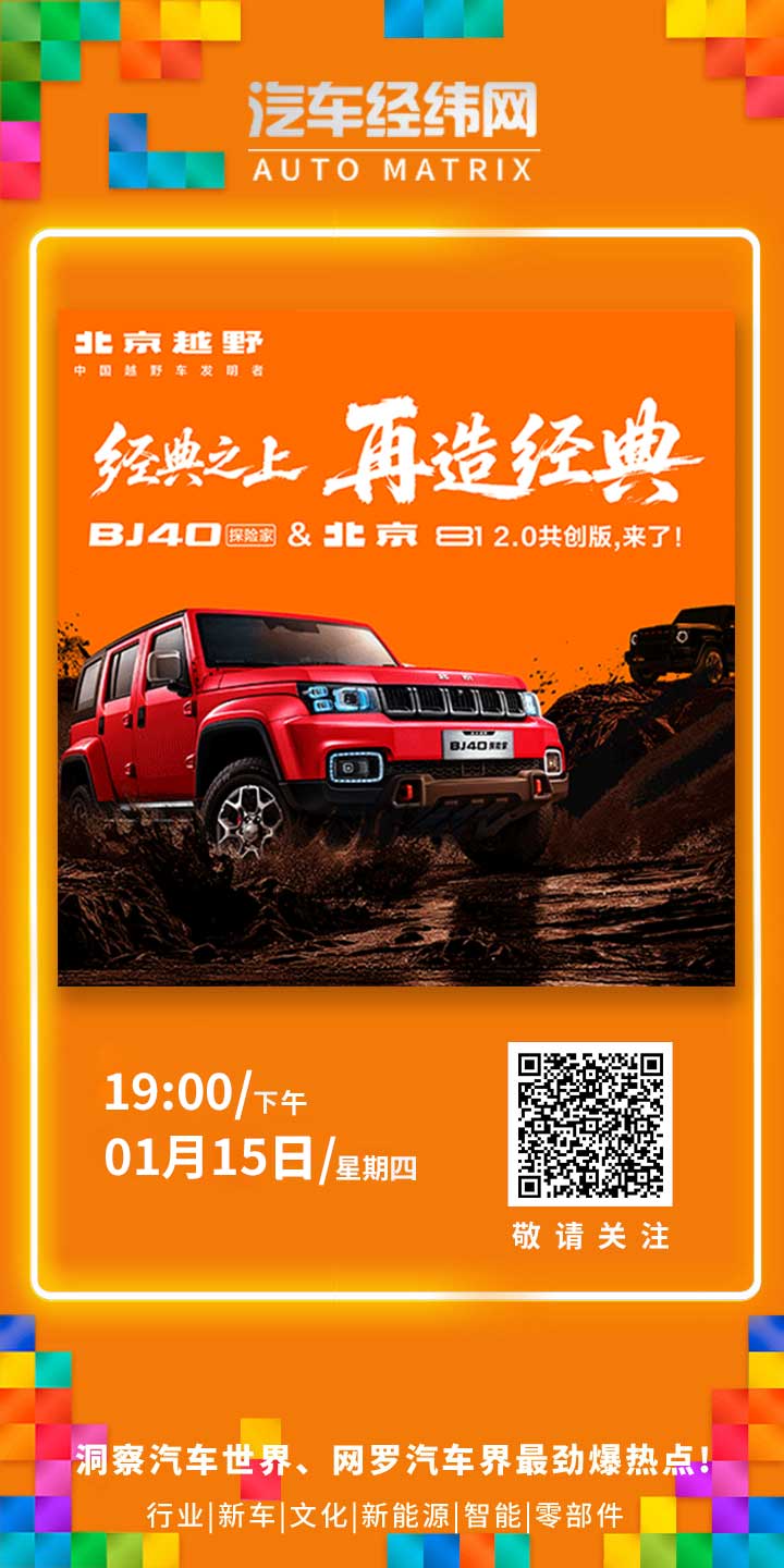1月15日19:00,BJ40探险家上市暨北京81 2.0共创版发布会将举行,邀您观看~