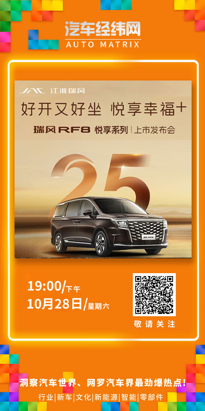 3月28日18:00-22:00为发布会直播时段,正式发布会时间为19:00-20:30,瑞风RF8悦享系列上市发布会正式开始,让我们相约直播间,感受瑞风RF8悦享系列的独特魅力,一同品鉴全能满配 越。