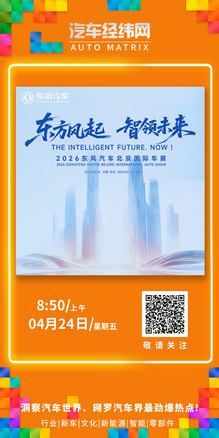 4月24日8:50,2026北京国际车展东风汽车发布会以“东方风起·智领未来”为主题,将在首都国际会展中心A3馆东风汽车展台正式启幕,敬请关注。